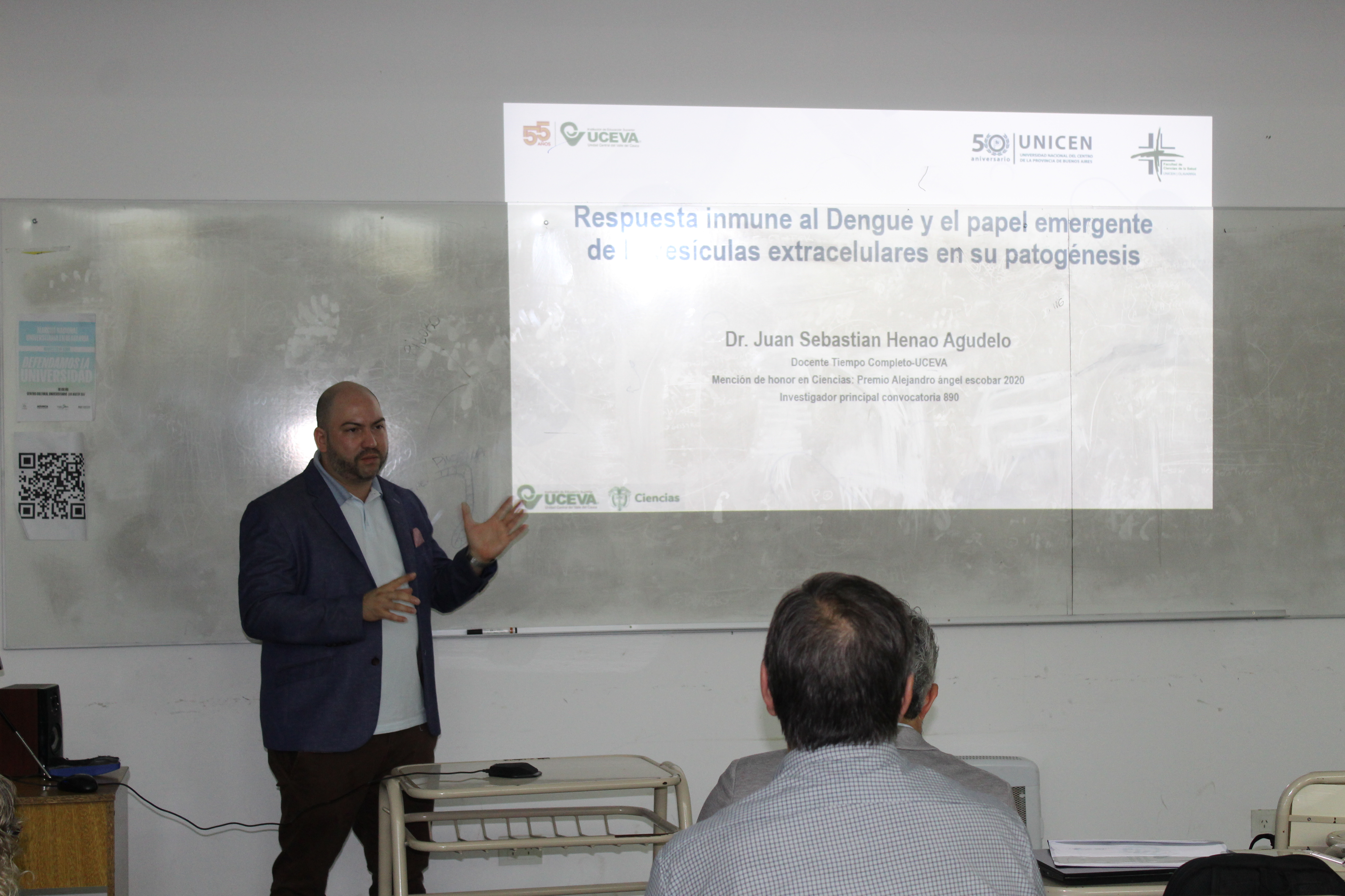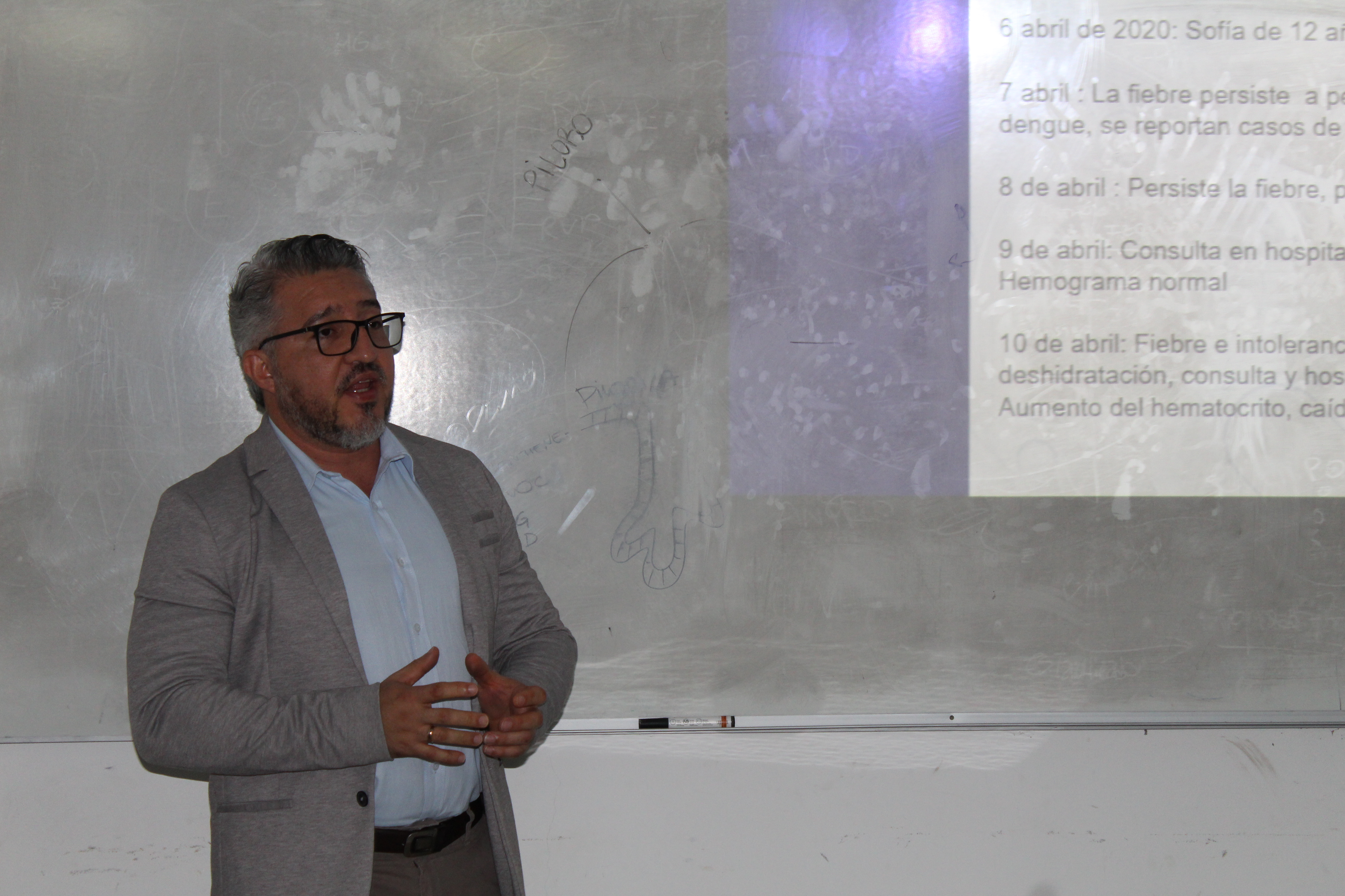 Durante la jornada, se desarrollaron exposiciones a cargo de especialistas que abordaron distintas dimensiones de la problemática. El Mag. Marco Tulio Cañizales Caicedo disertó sobre la fisiopatología del dengue y las estrategias de prevención y control; el Dr. Juan Sebastián Henao Agudelo presentó avances en torno a la respuesta inmune y las vesículas extracelulares; la Méd. María del Carmen Weis profundizó en la epidemiología del dengue; y la Lic. Esp. Cecilia Amarelle expuso sobre el cuidado del paciente con esta enfermedad.