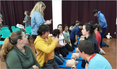 Participaron de la capacitación 220 personas entre los turnos mañana y tarde, donde hubo estudiantes avanzados de las carreras de Enfermería y Medicina de la ESCS, Enfermeros y Médicos del Servicio de Emergencia del HHC, Hospital de Sierras Bayas, Hinojo, Espigas, CAPs, Sierra Chica, Loma Negra y Recalde,