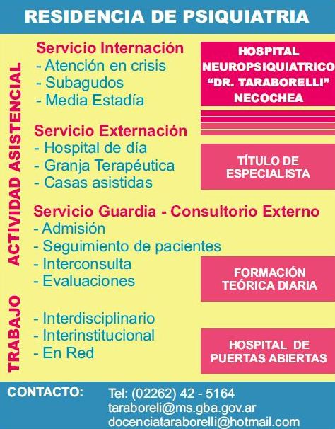 El Hospital Taraborelli de la ciudad de Necochea informa que se ofrece la Residencia en Psiquiatría.